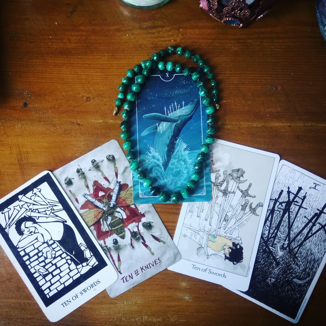 Le plus souvent, ce 10 porte un message rassurant : tu endures le sommet de tes soucis MAIS tu es au bout du bout de ce que les épées peuvent apporter comme épreuves. Elles touchent à leur fin. Laisse couler et accueille ce qui arrive.