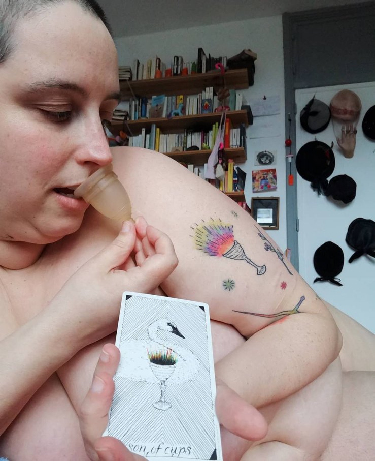 Mais le flux menstruel me rappelle qu’il faut que ça sorte. Je saigne avec mes règles. Mais pas que. Décharge d’émotions après le syndrome prémenstruel. Je pleure pour mes vieilles blessures, celles qui ont encore besoin de saigner de temps en temps pour libérer le poison. Évacuer les résidus post-traumatiques qui menacent de changer de forme et de devenir des nouveaux schémas.