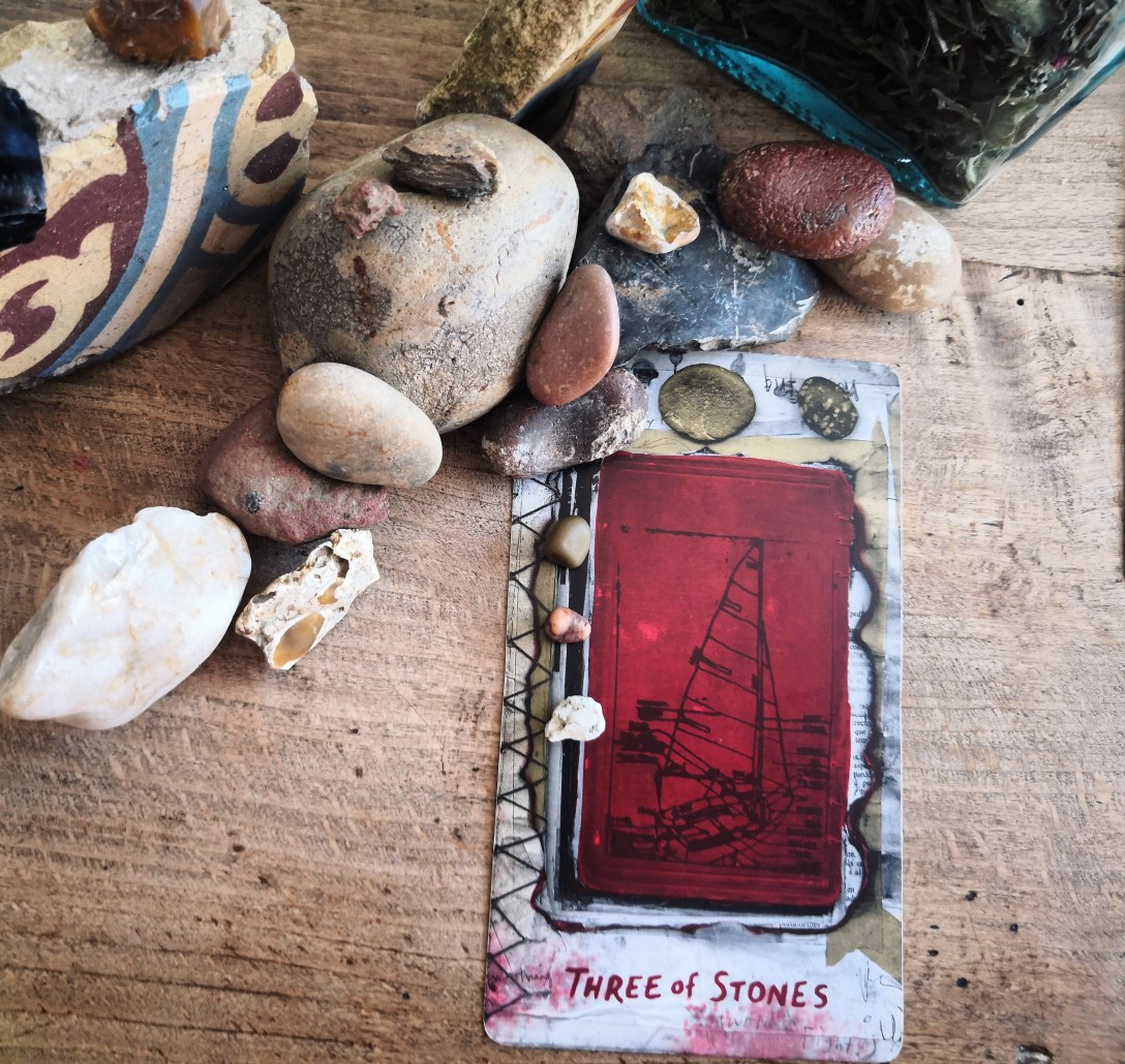 Le 3 de pentacles t’enseigne comment combiner. Avec lui, des idées à foison anime ton travail acharné (air). La passion embrase tes études assidues (feu). La diligence de tes actions se nourrit d’émotions, voire de spiritualité (eau). Cette carte de collaboration et de l’élément terre ne peut se passer des autres éléments. Le 3 de pierres les intègre. Pour que ton travail devienne réalité, utilise le peps du soleil, le rythme imprévisible des flots et le vent qui gonfle la voile et te propulse. C’est la coopération des éléments qui assurera ta réussite.
