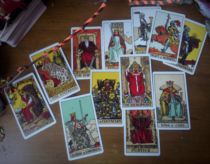 Illus: Next World Tarot, Mystical Cats Tarot, Slow Holler, Sakki-Sakki Tarot, Le Waite-Smith, Numinous Tarot