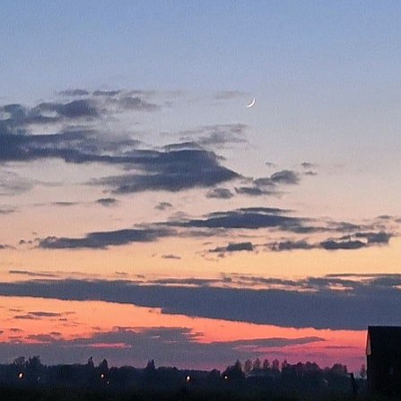 Dans le ciel: le tout fin premier croissant (à 3,5% de luminosité) et, invisibles à l’écran tant elles sont fugaces, Venus et Mercure apparaissent quelques minutes en étoiles du soir en ce moment ✨🌟