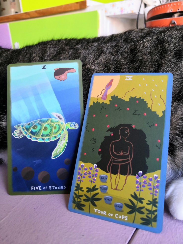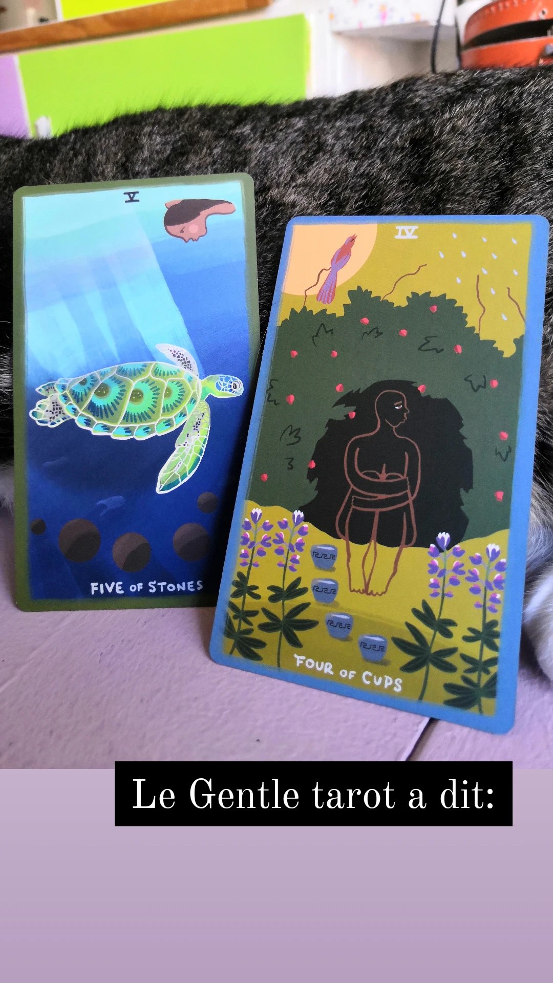 5 de cailloux et 4 de coupes – Gentle Tarot