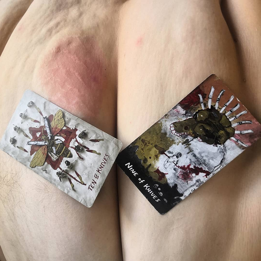Il y a tellement de tarots (pas ceux que je mets en avant avec leurs représentations complexes) qui illustrent La Lune avec une personne grosse. Elle doit alors symboliser ce qui est sauvage, incivilisé, indiscipliné, ne répondant pas aux attentes sociales,…