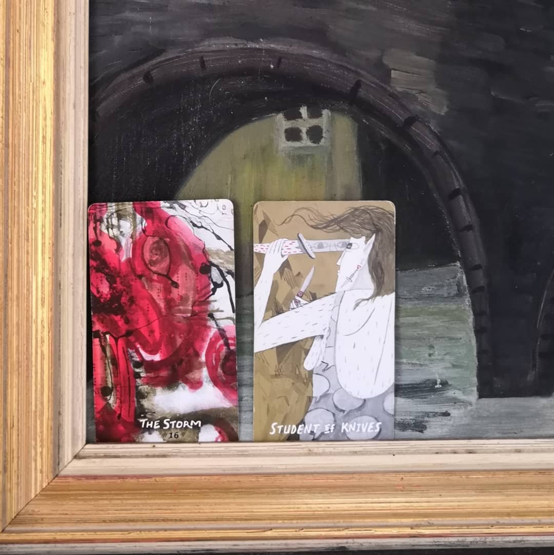 5 de bâtons et reine d’épées. Quelles divergences de vue sont irréconciliables en amitié pour toi ? Qu’est-ce qui compte le plus ? Qu’est-ce qui doit résister à tous les conflits ? Quelles concessions sont nécessaires ? Quand il y a un truc qui cloche dans une relation, est-ce que tu essaies d’en discuter ou est-ce que tu baisses les bras et t’éloignes subtilement mais irrémédiablement ? Quelles sont les limites es-tu capable de mettre sur la table et de défendre pour la viabilité d’une amitié ? Quelle est ta définition de toi-même quand tu es dans une relation fusionnelle ? As-tu le sentiment de devoir te sacrifier au profit d’une dynamique de relation ?