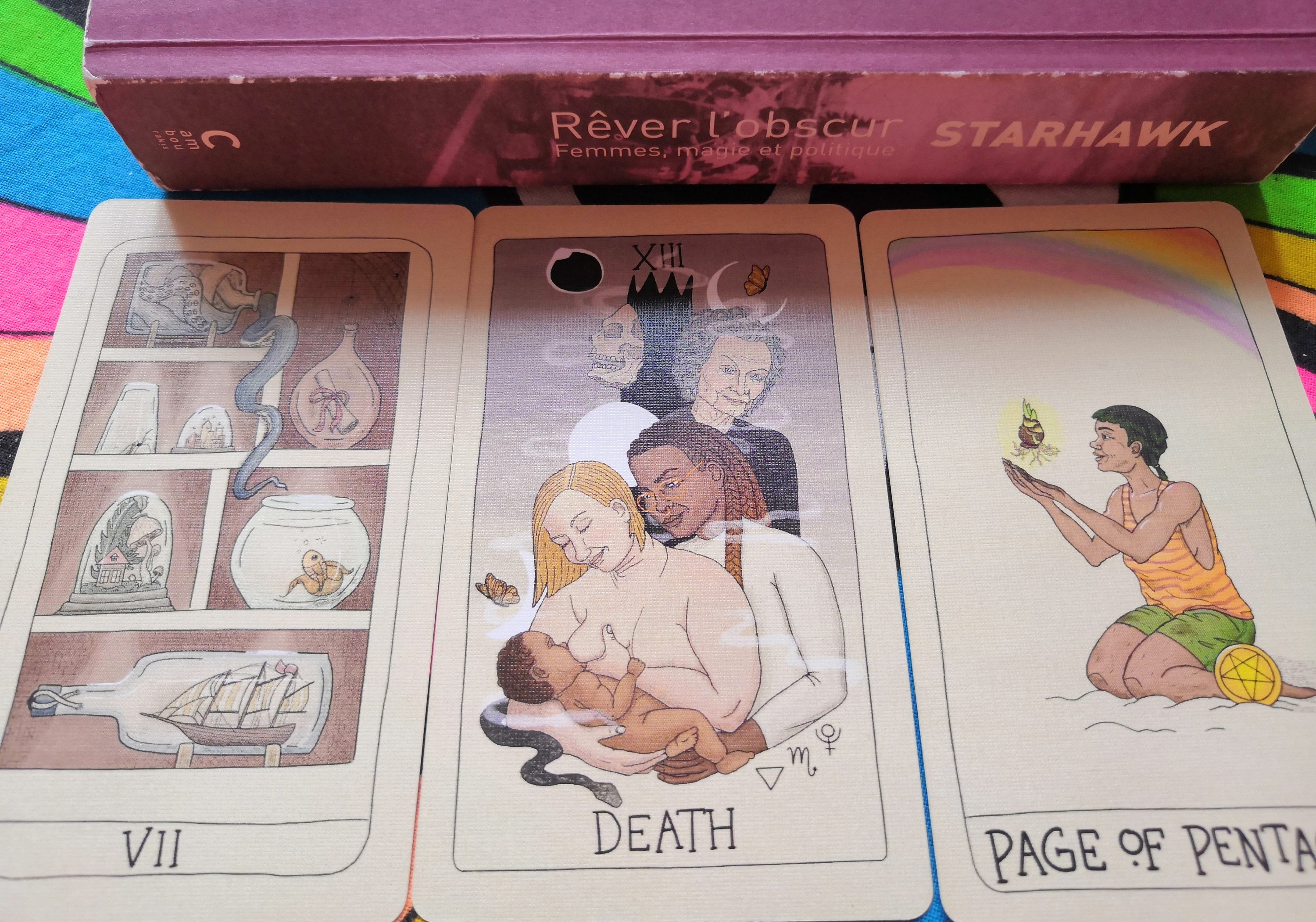 Je lis très peu en français sur ce sujet. Mes ressources sont imparfaites et limitées. En 2020, les publications sur le tarot en langue française ne sont plus rares. A ma connaissance, celles qui sont le plus visibles manquent encore cruellement de queer, d’antiracisme, d’anticapitalisme, etc. Peut-être que je me trompe ! N’hésite pas à me recommander des ressources si c’est le cas (en commentaire ci-dessous par exemple ^^).