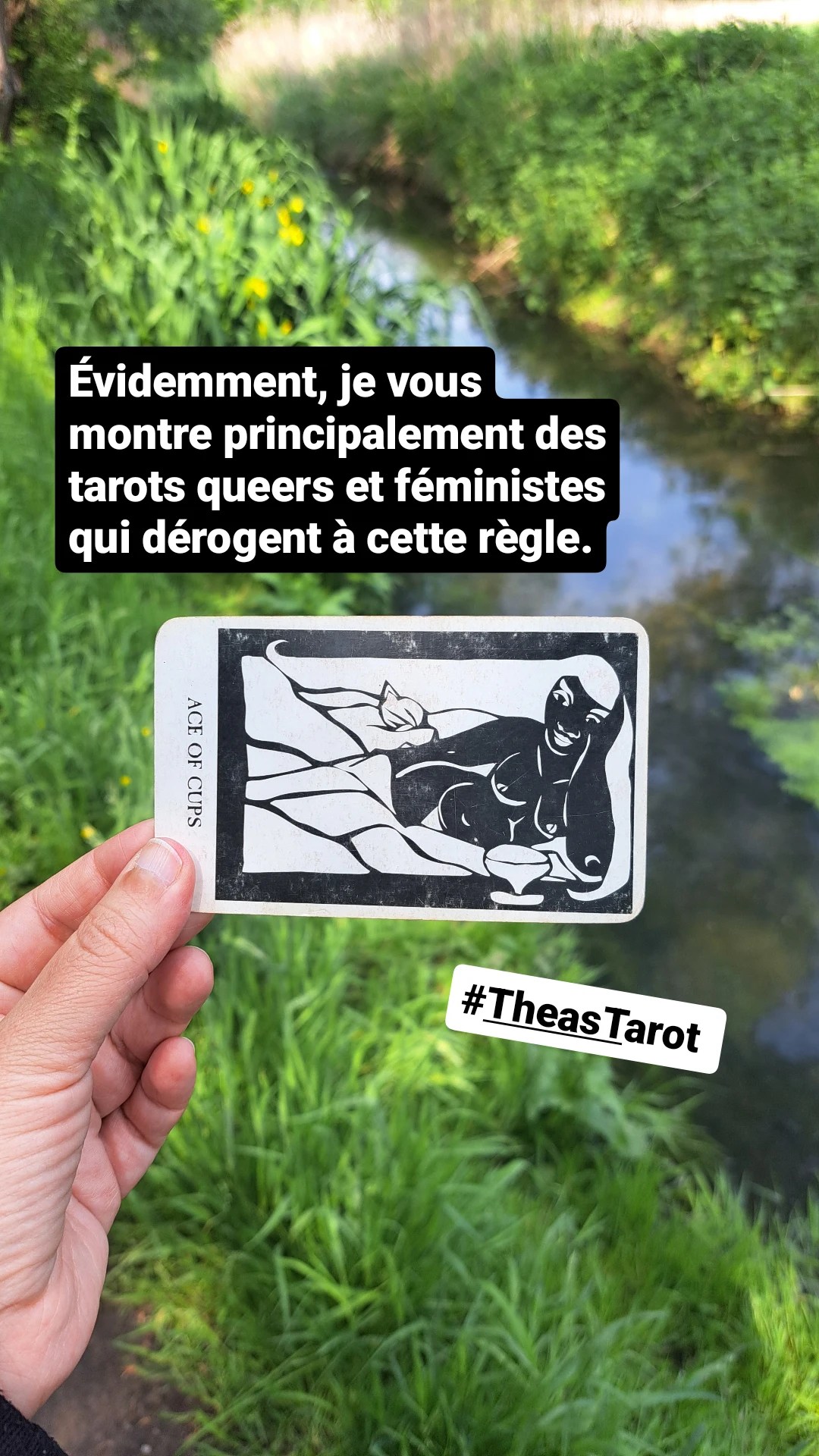 J’écris depuis les marges (et avec tous mes privilèges qui me rapprochent du centre, de la norme, à commencer par être blanche, cis et être issue de la classe moyenne). J’écris depuis l’hors-norme. J’écris en tant que freak. J’écris parce que je suis en colère. J’écris parce que les gros-ses crèvent de la grossophobie. J’écris parce que j’ai perdu blindé de choses dans ma vie parce que je suis gouine. J’écris parce qu’on a besoin de nos étiquettes. Parce que si je dis pas que je suis grosse, ça reste une insulte utilisée pour nous dénigrer et que toi aussi, tu continues à te dénigrer. J’écris parce que si j’avais pas rencontré des fems trans, bies, lesbiennes, gouines (si tu penses que fems, c’est le petit nom de féministes, tu as tort, ça c’est encore le prix de notre invisibilisation par les féministes cis et hétéros)… si j’avais pas rencontré des fems, je serais encore en train de me détester, de vivre avec des phobies sociales, de chercher à crever. J’écris parce que mes communautés sont les raisons pour lesquelles je suis en vie. Elles sont aussi les raisons pour lesquelles je me suis effondrée (nuances, toujours). J’écris pour qu’on ne puisse pas nous ignorer. Pour qu’on ne puisse pas ignorer soi-même ce qui fait notre magnificence (pour paraphraser Mia Mingus sur les magnificences fems et handies). J’écris parce qu’on résiste. J’écris parce qu’on est en vie. J’écris parce qu’on ne les laissera pas nous effacer. Lire la suite « En chariot dans l’univers du tarot QUEER » →