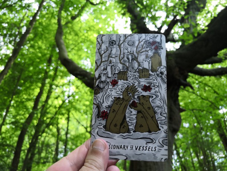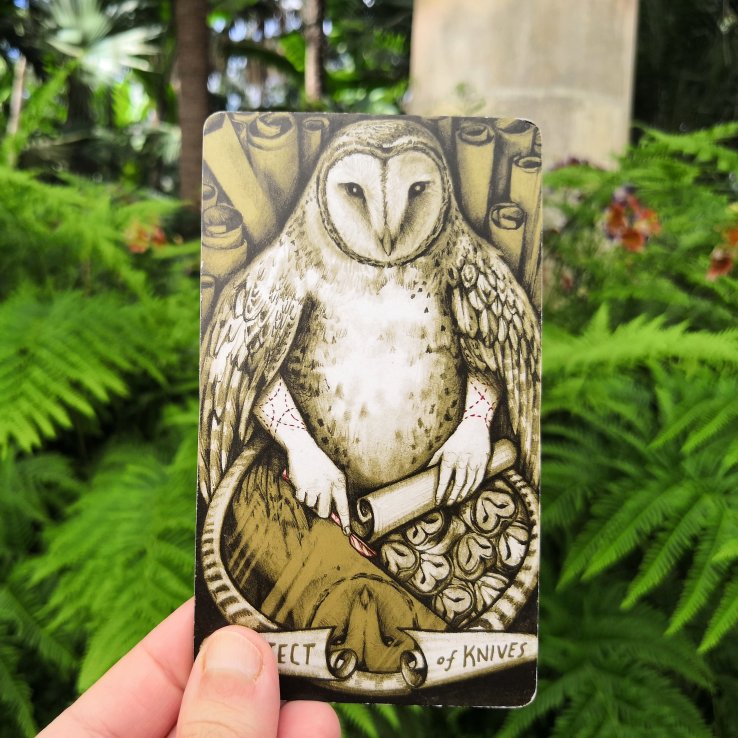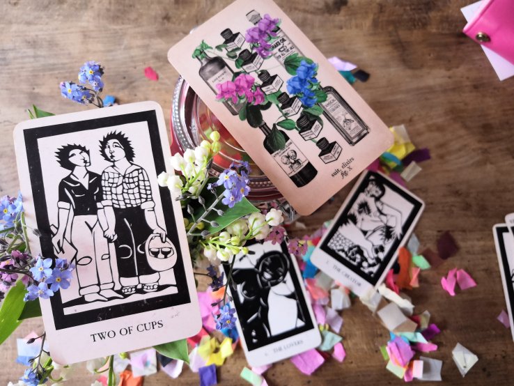 Les tarots sur les illustrations sont, dans l’ordre d’apparition: Thea’s tarot, Spolia Tarot, Sasuraibito Tarot, This Might Hurt Tarot, Antique Anatomy Tarot, Next World Tarot.