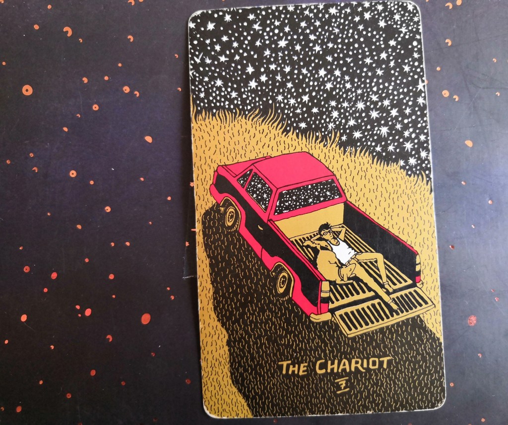 Guidé-e-s par l’art de la cartomancie, nous allons parcourir notre ciel. Programme de la visite? Exploration des planètes et des autres corps célestes parsemant nos constellations créatrices queer. Embarquons à bord des vidéos! N’attachons pas de brides. Nos imaginations sont d’ores et déjà en apesanteur.