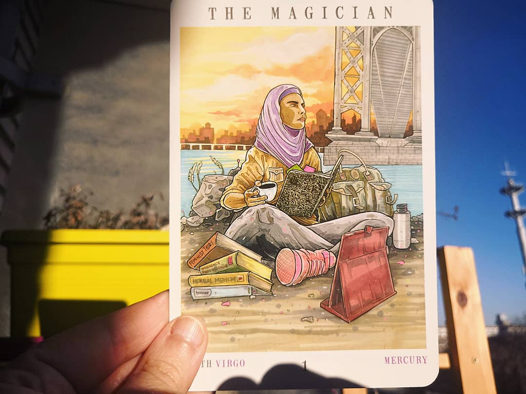 On lae trouve dans les déserts et dans les allées, dans les maisons pour les âmes paumées et dans les X sur les cartes de la géométrie sacrée. Ce-tte cavalièr-e cultive la force requise pour exprimer sa vérité et se battre pour la justice par le biais de l’expression créative. Elle te demande une inspection avant de plonger dans ton inconscient : faire la part des choses entre la vérité et les compromis sans garantie, entre les guides et les démons. Lae cavalièr-es appelle à une révolution qui passe par de nouveaux matériels, faits de ressources conçues par nous-mêmes.