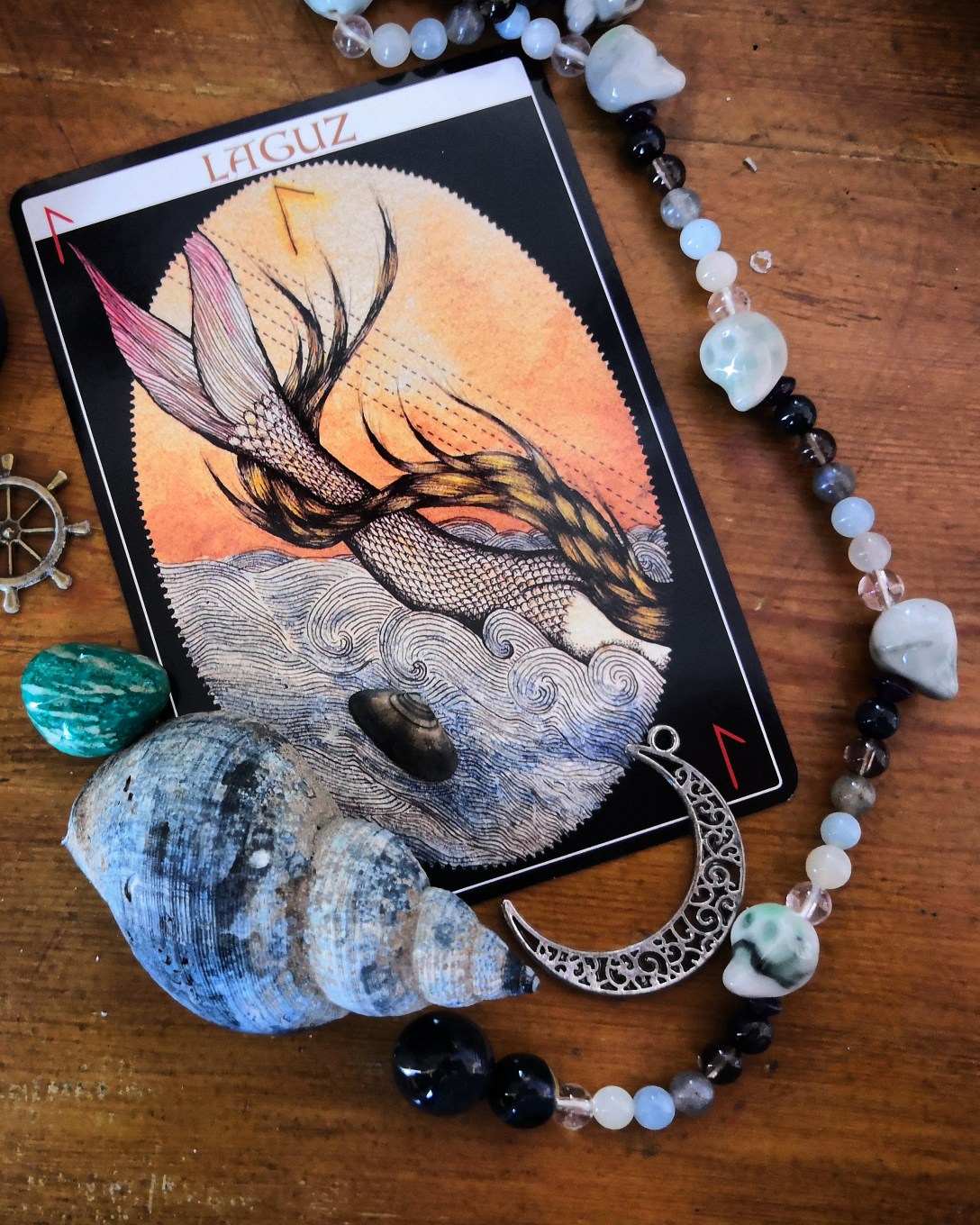 Se laisser envelopper par l’eau. La laisser nous contenir. Sa caresse sur nos peaux et écailles mène à l’invitation: laisse-toi emporter dans les mystères. Tes émotions ne te rendent pas faible. Tu es vulnérable. Tendre et solide. Tu es dou.x.ce. Il y a tant d’amour à t’offrir. Tu es un.e guerrièr.e dans un monde déchiré. Tu es à la hauteur de la tâche. Tu es vulnérable. Tu es un.e guerrier.e puissante. Arianrhod pourrait être ton amante.