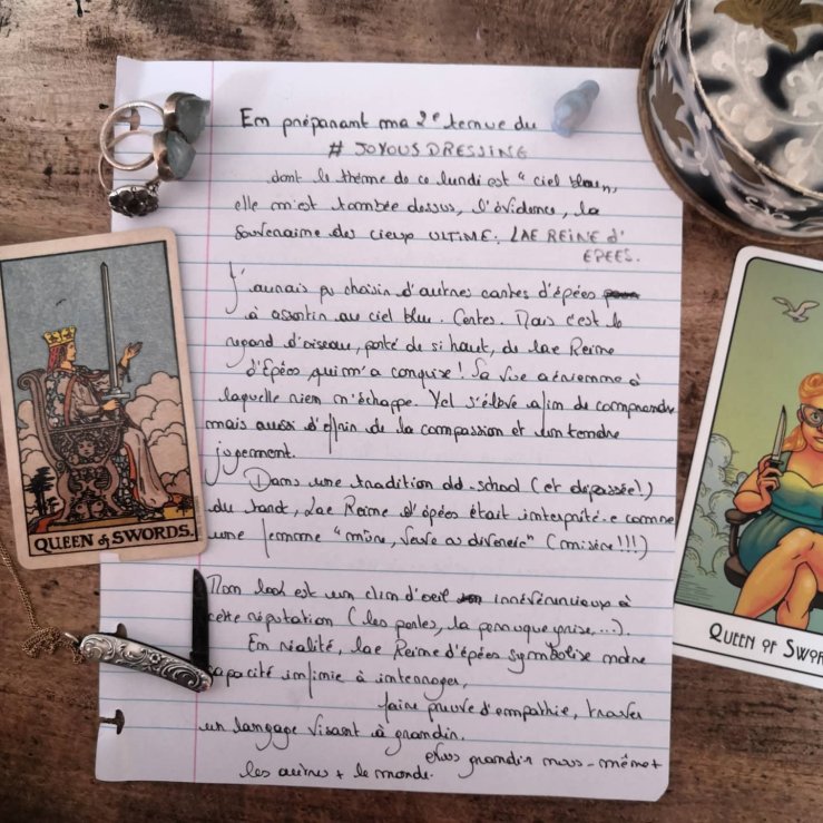 J’avais oublié de partagé mon texte manuscrit en français sur la reine d’épées…