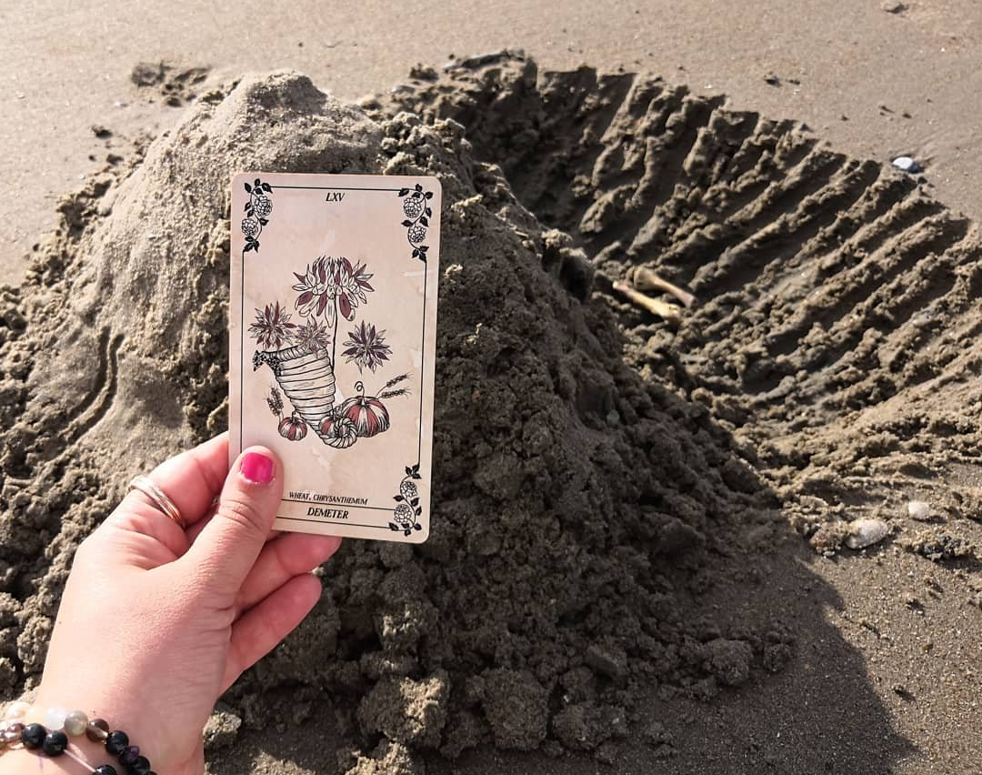 Le tirage « récoltes » t’aide à faire le point: qu’est-ce qui est à maturité, qu’est-ce qui va être exploité tout de suite, qu’est-ce que tu vas stocker pour plus tard ? Le tirage « gratitude/célébration » invite à se poser avec reconnaissance et joie. Il te rappelle de ne pas prendre prendre prendre prendre mais aussi de respecter, d’honorer. Pour cela, il fonctionne simplement par éléments: quel est leur message ? comment les remercier ? Enfin, le tirage « introspection » te prépare à la partie moins ensoleillée de l’année.
