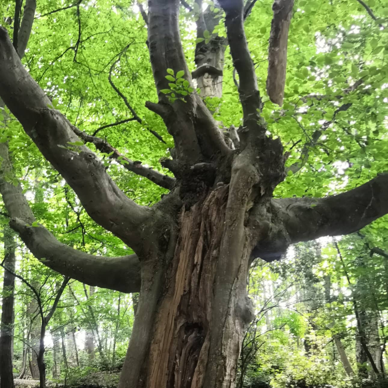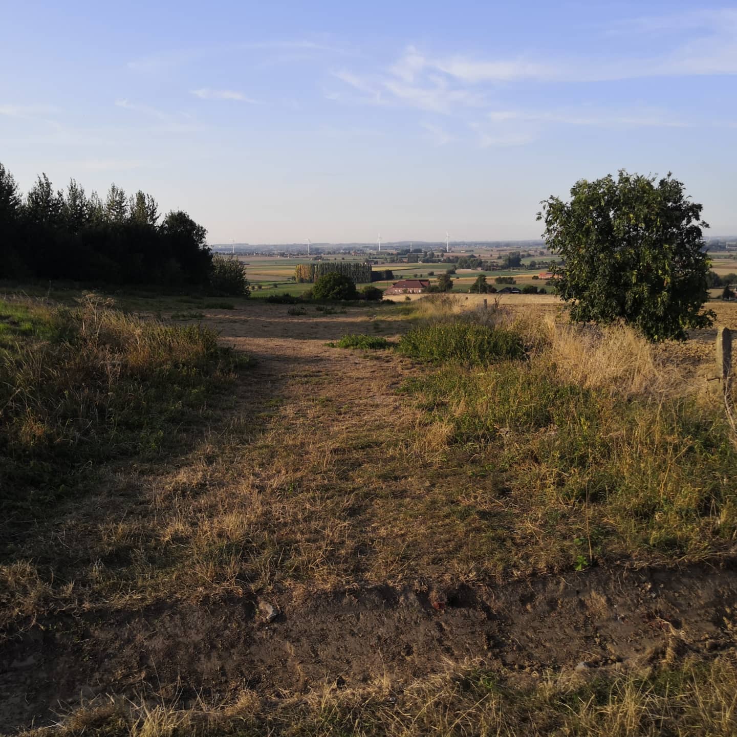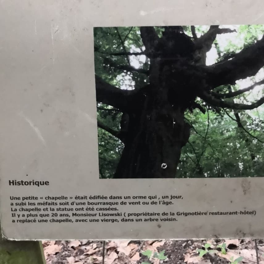 Les déités de ces lieu ? Le nom du Saint qui a tenté d’éradiquer les croyances locales pour imposer le christianisme est celui qui désigne communément l’endroit de nos jours. Il y a encore quelques décennies, l’usage d’une allusion à la Trinité prédominait. Si la Trinité est incontestablement un concept chrétien, c’est toutefois une autre résonnance qui vient me chercher. Mon cœur s’emplit en effet de la douceur des Matronae/Matres régionales, le groupe de 3 « déesses-mères » locales. Des traces du culte marial sont encore présentes le long des nombreux chemins du Mont Minerve. En contrebas, du côté de la ville, à l’opposé de notre pèlerinage du jour, se trouve le lieu-dit consacré au culte marial « de la tombe ». Selon certaines sources secondaires, elle s’appelait auparavant « Notre-Dame du Tumulus ». Son culte aurait permis aux pélerin-e-s éreinté-e-s de se recueillir dans la vallée auprès d’une statue érigée sur un tumulus de l’époque gallo-romaine avant de poursuivre ou de renoncer à l’ascension de la colline. Sacré Mont, cette colline ! Elle culmine à à peine 150 mètres d’altitude. Les Monts du plat pays…