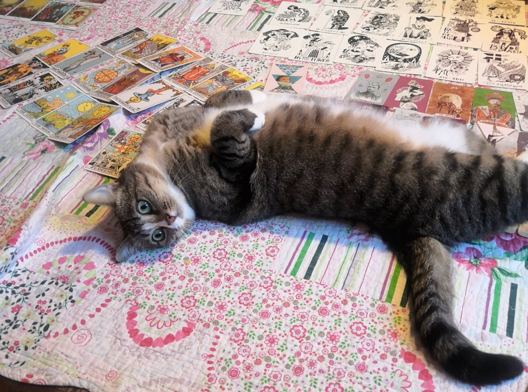 En revanche, le tarot est incontestablement un outil de narration. Eh oui, ça, j’en suis convaincue : le tarot est avant tout un outil qui favorise l’organisation d’informations (ou l’accès à celles-ci). Le reste dépend des usages qu’on en fait. Outil signifie qu’à mes yeux il n’est pas magique en soi. Ces bouts de carton ne possèdent aucun pouvoir inhérent (ce qui ne signifie pas que la relation qu’on nourrit avec les cartes et les énergies dont on les entoure n’ont aucune influence sur elles). Lire la suite « Apprendre le tarot. 1/ Un outil de narration »→