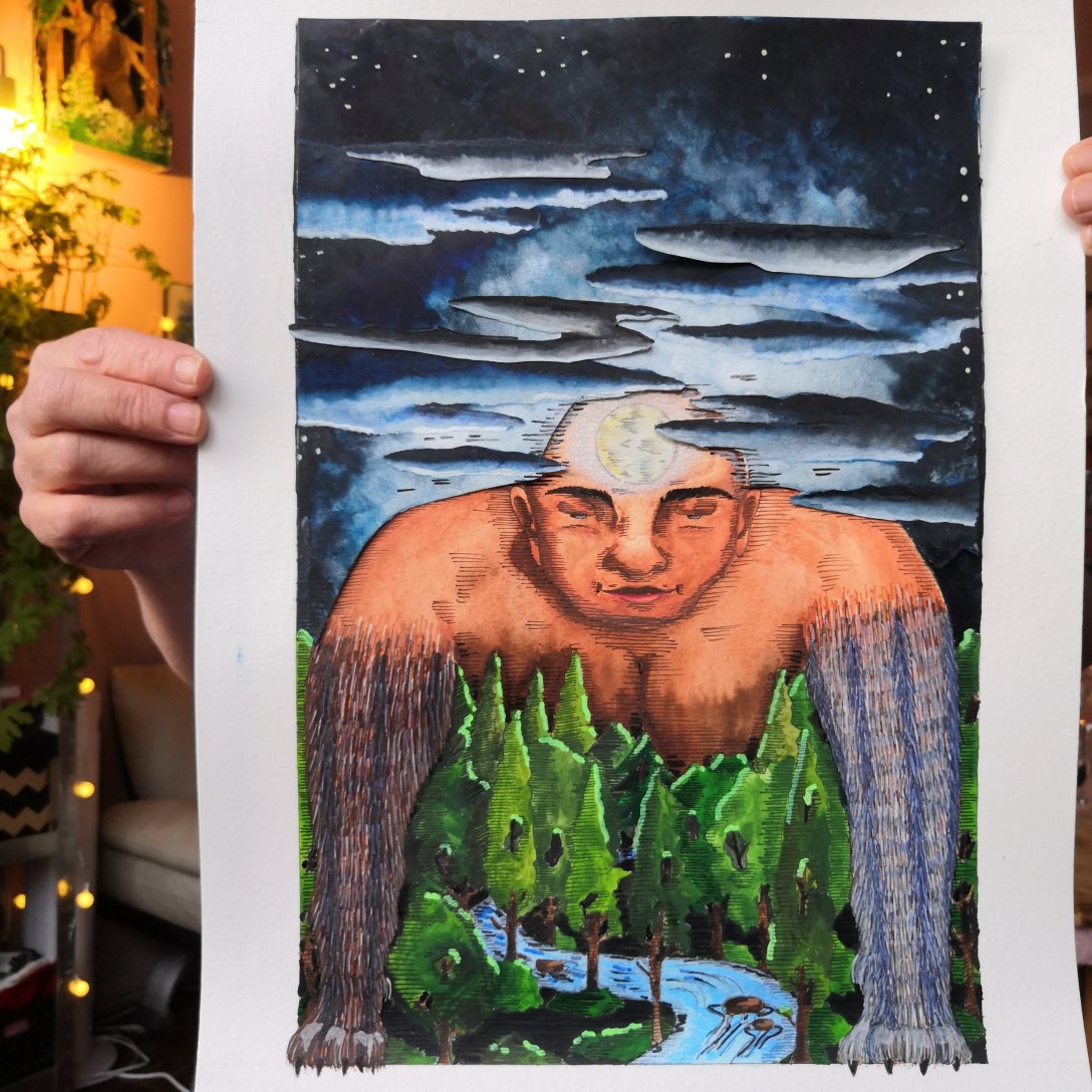 Nous sommes submergé.e.s dans les eaux du mysticisme. Nous ne faisons qu’un.e avec les profondeurs, avec le cosmos, avec les déités, avec les monstres, avec les rêves. Tout fusionne dans l’océan des Poissons.