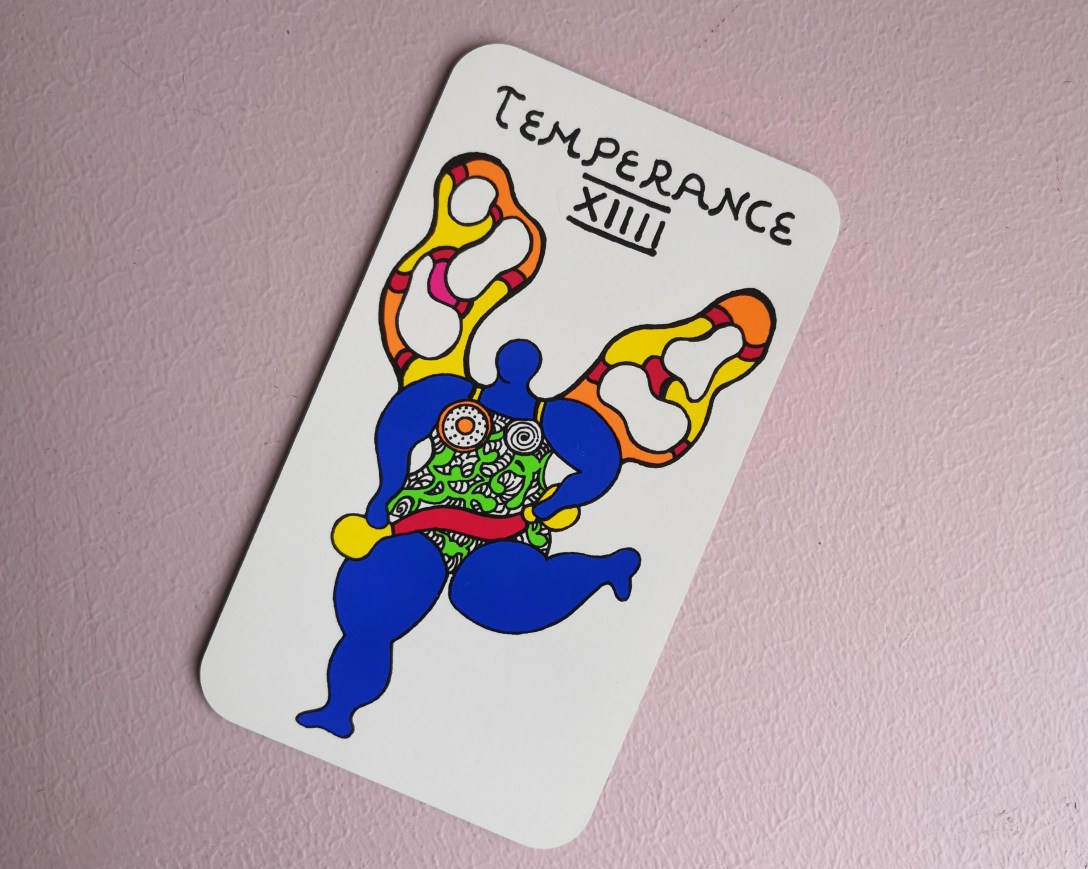 Il y a 3 ans, j’ai failli me faire tatouer l’ange de la Tempérance de Niki de Saint-Phalle sur le bras. Ce rappel d’un équilibre précaire aurait enchanté mes bras striés de cicatrices. Je pensais à toutes les années que j’avais passées tiraillée entre euphorie et dépression. Je songeais à l’alchimie des larmes que j’avais versées pendant plusieurs mois en trouvant un peu d’équilibre : la joie d’avoir survécu, le soulagement de vivre -enfin- et non plus de m’accrocher à une vie que je souhaitais quitter. Les mêmes larmes de joie quelques années plus tard dans l’extase de la rencontre de Rose. La Tempérance signifiait tout ça.