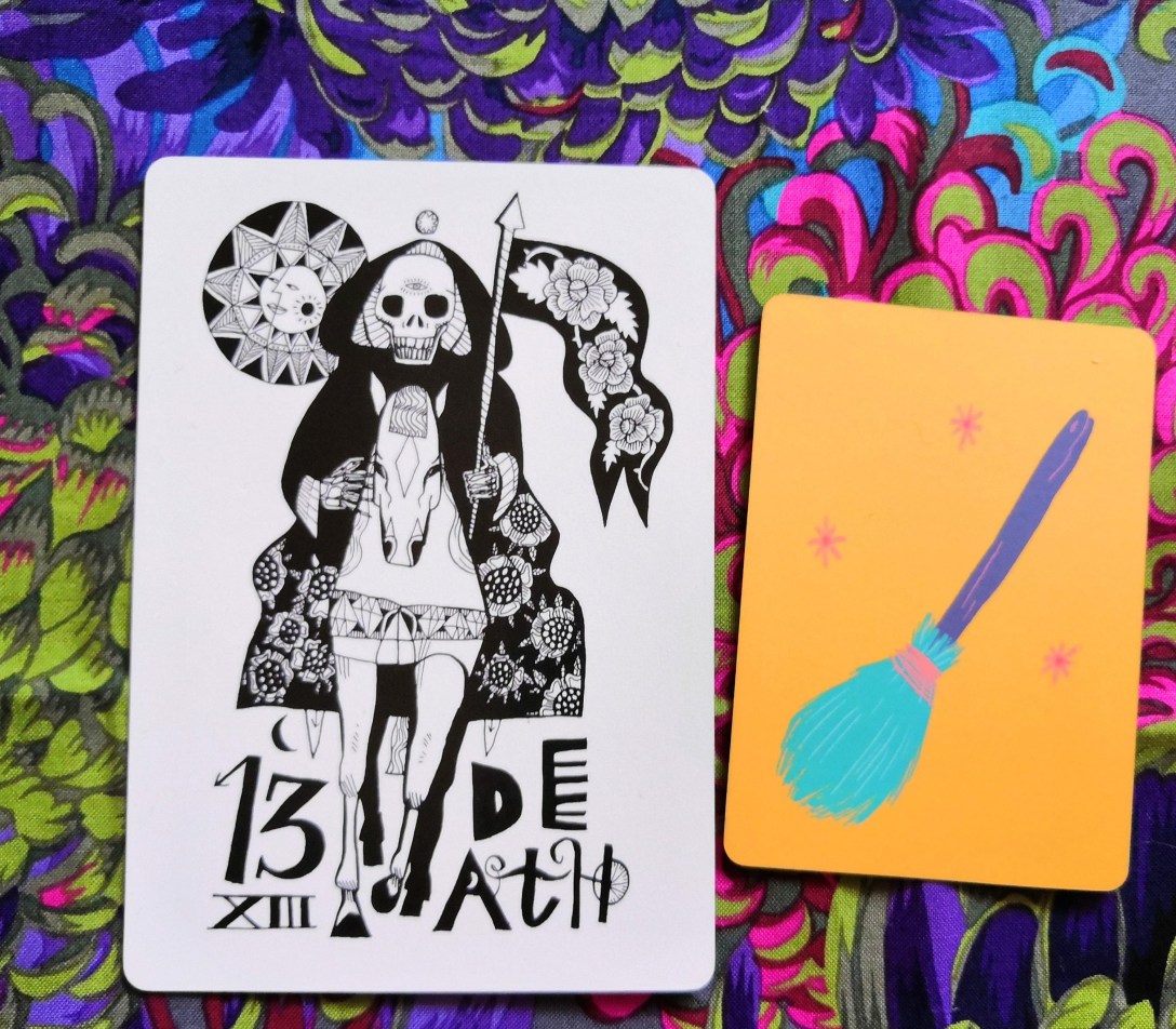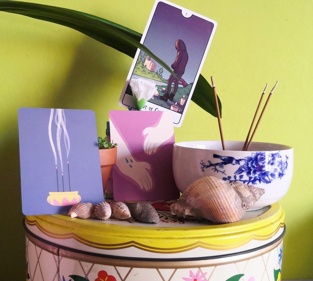 Si tu te sens déconnecté-e du tarot ou d’un de tes jeux en particulier, pourquoi ne pas lui filer un rencard ? Crée une atmosphère de rêve et écoute-le, sélectionne un étalement d’interviews de jeux si besoin ou crée-le sur-mesure. Ça peut donner quelque chose comme ça, type thérapie de couple (hashtag ironie) : 1/ l’état de notre relation, 2/ pourquoi on s’est éloigné-e-s, 3/ comment raviver la flamme ?, 4/ est-ce qu’on a encore un avenir ensemble. Si, à la réflexion (ou l’analyse du tirage), tu réponds par la négative à cette dernière question, c’est une chouette occaz d’échanger, de donner ou de revendre ton jeu. Peut-être que tu mettras quelques mois avant de craquer sur le tarot d’un-e artiste queer fabuleux-se ou avant de tomber sur un jeu super rare ou qui te tape dans l’oeil au marché aux puces ou à la bouquinerie (c’est du vécu !). Lire la suite « Comment apprendre le tarot: entretenir ta relation avec les jeux »
